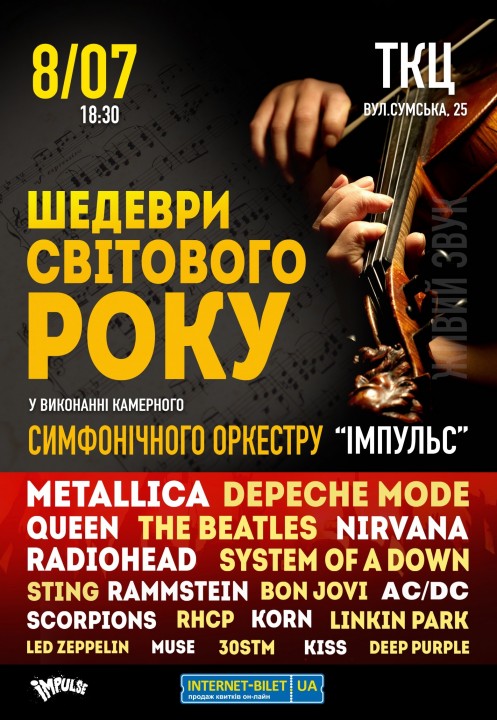 Програма «Шедеври світового року» у виконанні камерного симфонічного оркестру «Імпульс» – це, по суті, симбіоз класичної та рок-музики.