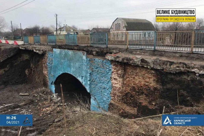 В начале апреля были выполнены работы по демонтажу тротуара левого проезда моста на Н-26 «Чугуев-Меловое», км 12+572.