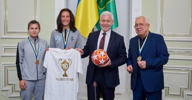 Секретарь Харьковского городского совета Игорь Терехов поздравил игроков, тренеров и руководство футбольного клуба с праздничной датой и вручил им Благодарности городского головы.