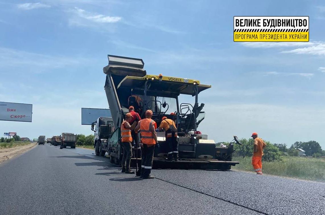 В рамках Программы Президента Владимира Зеленского «Большое строительство» в эти выходные на Харьковской окружной дороге начали устраивать финишный слой покрытия.