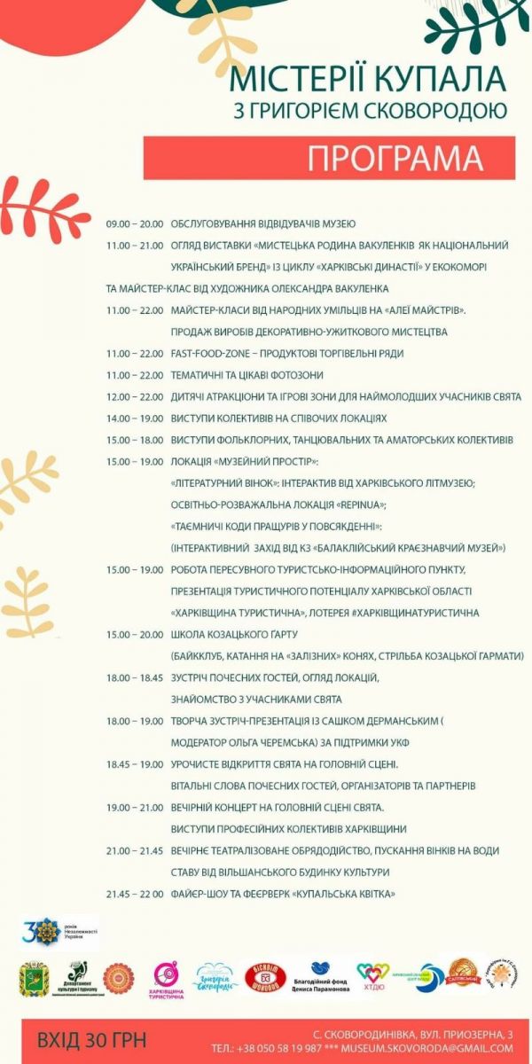 Гостей ждут выставка художественной семьи Вакуленко, встреча с украинским детским поэтом и писателем Сашкой Дерманским, школа казацкой закалки, локация «Музейное пространство»: интерактивные программы от Харьковского литмузея, музея Репина и Балаклейского краеведческого музея.