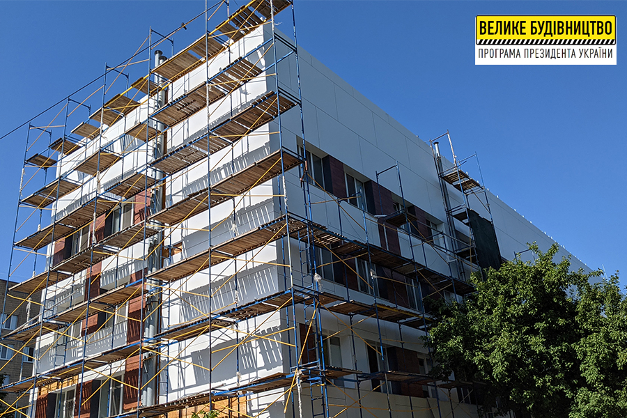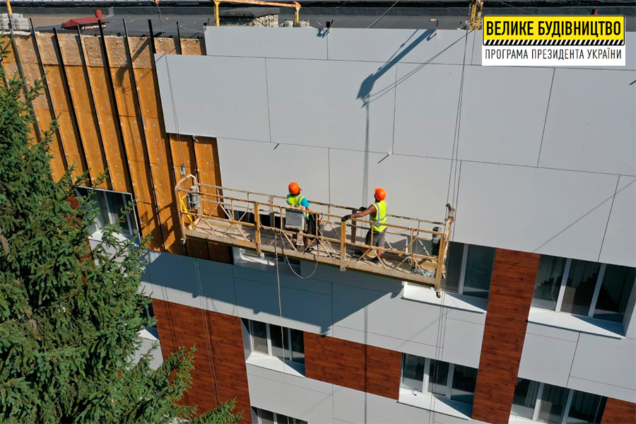 Работы на объекте проводят в рамках Программы Президента Украины Владимира Зеленского «Большое строительство». В целом предусмотрено проведение работ по утеплению зданий на общей площади более 8000 кв. м. Это два корпуса лечебного учреждения - главный и грудной, переход между корпусами и обустройство кровли.