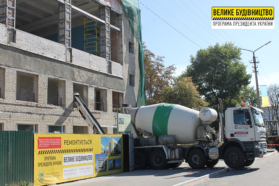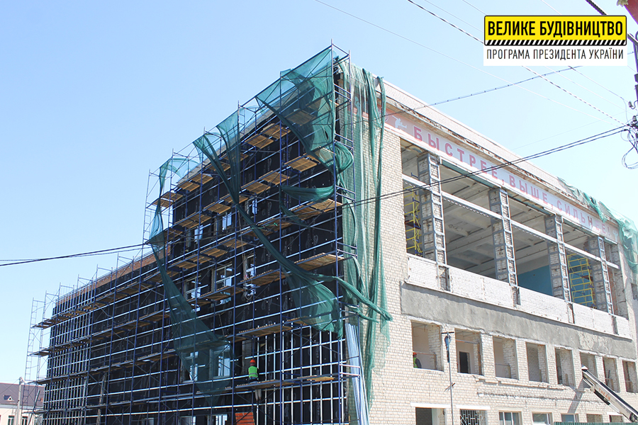 Реконструкция спорткомплекса проходит в рамках Программы Президента Украины Владимира Зеленского «Большое строительство». Сейчас выполняются работы по остеклению фасада, по монтажу подсистем и основному фасаду.