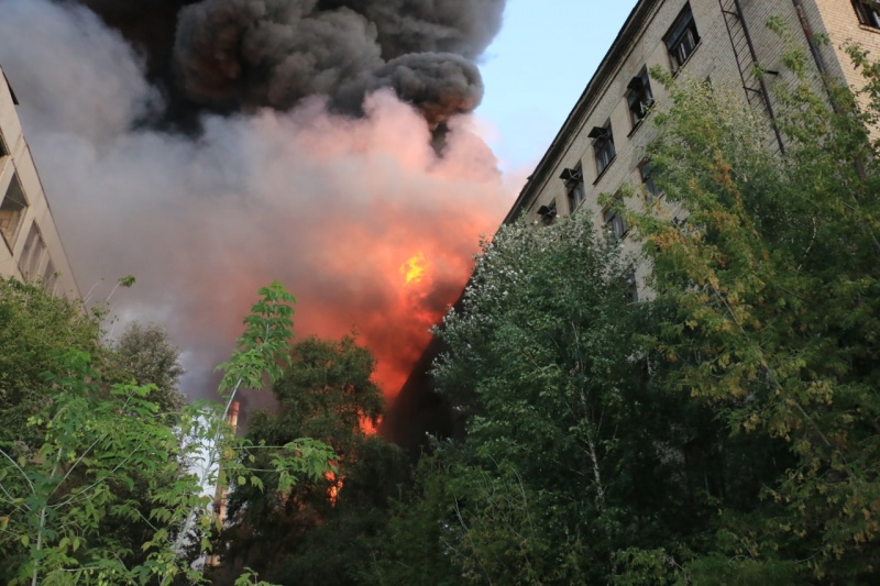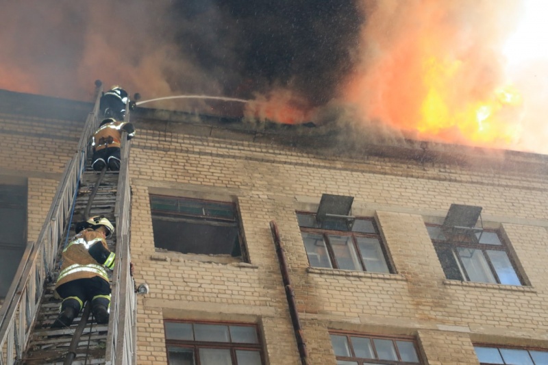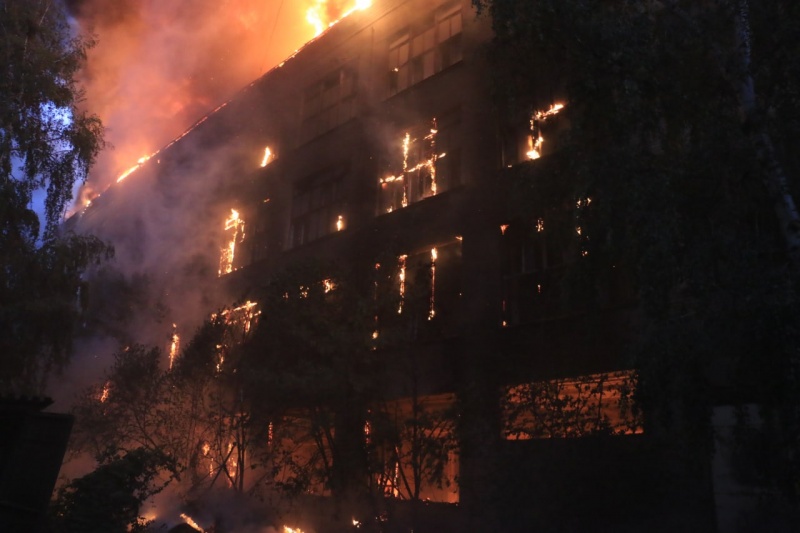 "Пламя охватило площадь около 5000 квадратов. Горели опилки на первом этаже здания, деревянные оконные рамы с первого по четвертый этажи, а также кровля здания предприятия", - говорится в сообщении.