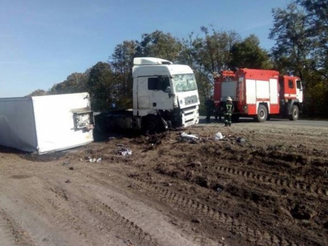 Вблизи села Грушвица 1 Ровенского района (девять километров от города Ровно) перевернулся в кювет грузовик MAN.