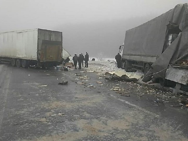 Недалеко от Шаровки Богодуховского района Харьковской области произошло ДТП с участием нескольких фур.