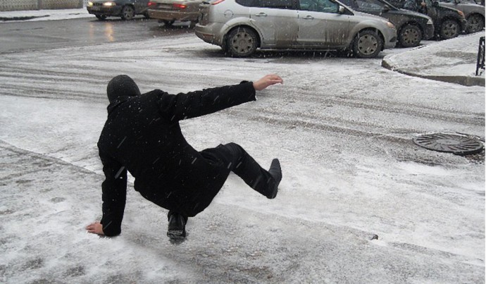 Не забывайте, что наибольшую опасность в гололед представляют лестницы (рекомендуется ставить на каждую ступеньку обе ноги, а не шагать как обычно), обочины дорог, железные крышки люков, а также места с приличным уклоном. Старайтесь не ходить возле этих мест.
