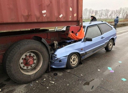 ФОТО: Влетела под фуру. Под Красноградом в искореженном авто зажало пассажирку (ГУ ГСЧС)