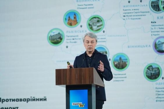 «Наша «изюминка» - это «Большая реставрация», о которой уже много говорили. Мы начинаем работу в этом году. Составляем вместе с местными администрациями списки, которые должны утвердить эксперты. Это 150 объектов. Бюджет на этот год - 2 млрд грн. Продолжительность этой программы - 3 года. По опыту наших восточноевропейских коллег мы знаем: если мы начнем, то мы никогда процесс «Большой реставрации» не остановим. Это новые смыслы в регионах. Это «туристические магниты». Это и новые дороги, которые ведут к объектам «Большой реставрации». Все эти объекты расположены на всей территории страны», - рассказал Министр культуры и информационной политики Украины Александр Ткаченко во время своего выступления.