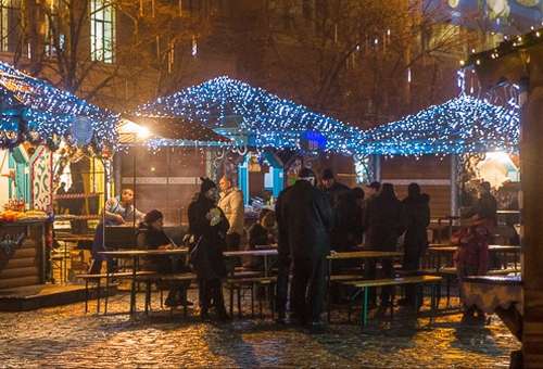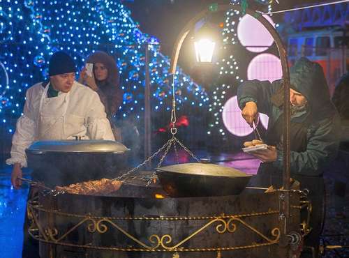 Конечно же, на площади Свободы открылась и праздничная ярмарка, где работают мастера гастрономических изысков. В домиках предлагают шашлыки (25 гривен за 100 граммов), вареники (20 гривен порция из трех больших вареников) и другую закуску. В павильонах можно «остограмиться». В частности, глинтвейн стоит от 25 гривен за 200 граммов, медовуха (от 10 гривен за стакан), мед - 70-80 грн/кг.