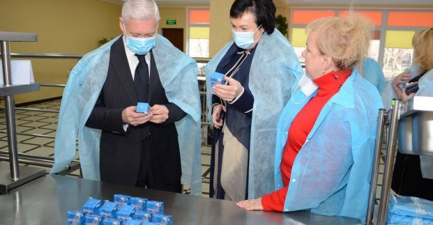 В учреждении соблюдаются все противоэпидемические меры: на входе в школу проводится температурный скрининг, а в обеденном зале можно не только вымыть руки, но и продезинфицировать их антисептиком.