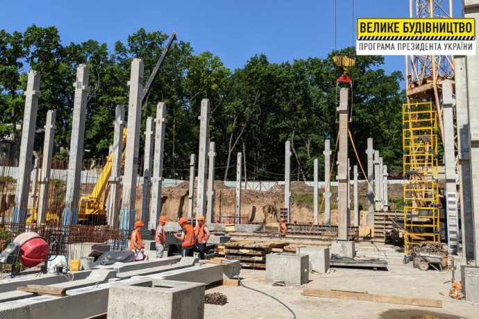 По информации директора Департамента капитального строительства Харьковской ОГА Сергея Жукова, сейчас на объекте смонтировано 70 колонн железобетонного каркаса лечебно-диагностического корпуса.
