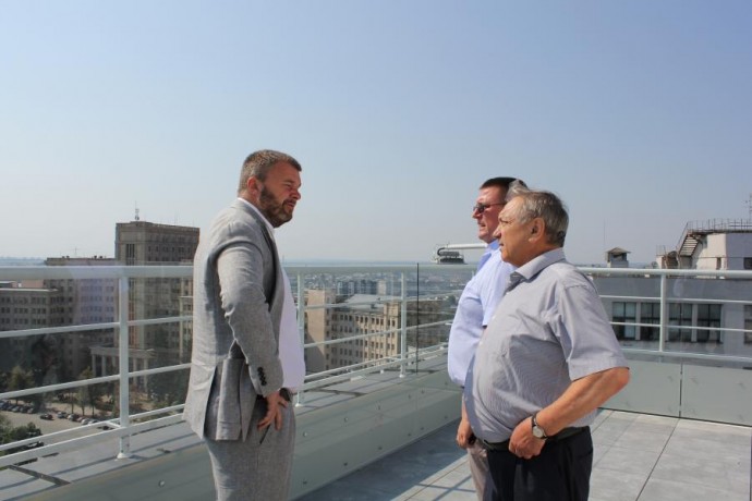 «Вход на площадку будет оформлен несколькими ступенями и пандусом. Помещение, примыкающее к смотровой площадке, тоже приводится в надлежащий вид. В нем осуществлен капитальный ремонт: заменены окна, сделан потолок, стены и пол. Осталось все это только покрасить. Новое дыхание получат и сам подъезд, по которому туристы пойдут к смотровой площадке, и лестничные марши, и лифт для подъема. И все будет с сохранением архитектурной ценности Госпрома», - отметил Михаил Харнам.