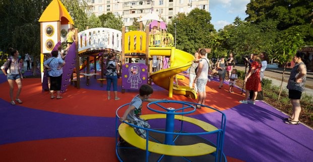 Территория была благоустроена, и на ней появились детские площадки, множество различных игровых элементов, панна-корт для уличного футбола, а также комплекс для детей с особыми физическими потребностями.