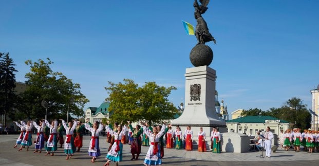 В нем приняли участие секретарь Харьковского городского совета Игорь Терехов, представители городской и областной власти, общественных организаций, духовенство, военные, жители и гости города. Присутствующие возложили цветы к памятнику «Летящая Украина». На площади выступили творческие коллективы и прозвучал гимн Украины.