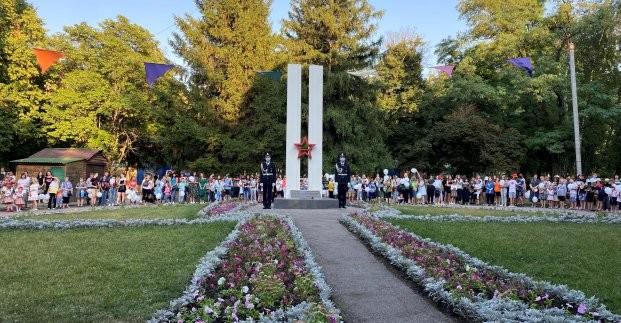 Под гимн Украины они прошли к главной стеле по Аллее Славы, возлагая цветы к памятникам и монументам.