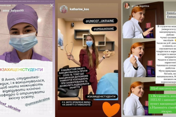 Министерство здравоохранения, UNICEF Ukraine и Украинская медицинская студенческая ассоциация поддерживают флешмоб и призывают и других вакцинированных студентов делиться собственными историями.