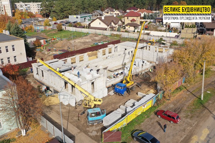 Новый корпус яслей-сада №3 «Теремок» в Песочинской громаде возводят в рамках Программы Президента Украины Владимира Зеленского «Большое строительство».