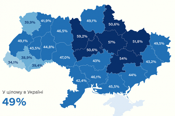 Меньше всего вакцинировано в Закарпатской, Ивано-Франковской, Черновицкой и Волынской областях. Здесь прививалось менее 40% взрослых.