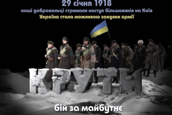 29 января 1918 года около железнодорожной станции Круты на Черниговщине около 500 украинских воинов: курсантов Первой Киевской юнкерской школы им. Б.Хмельницкого, бойцов Студенческого куреня (сотни) Сечевых стрельцов - студентов Киевского университета и гимназистов-старшеклассников и отряд свободного казачества из г. Нежина сдерживали наступление 3-4 тысяч красногвардейцев из Москвы, Петрограда и Кронштадта.
