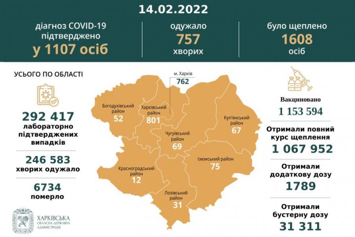 75 заболевших - жители Изюмского, 69 - Чугуевского, 67 - Купянского, 52 - Богодуховского, 31 - Лозовского, 12 - Красноградского районов.