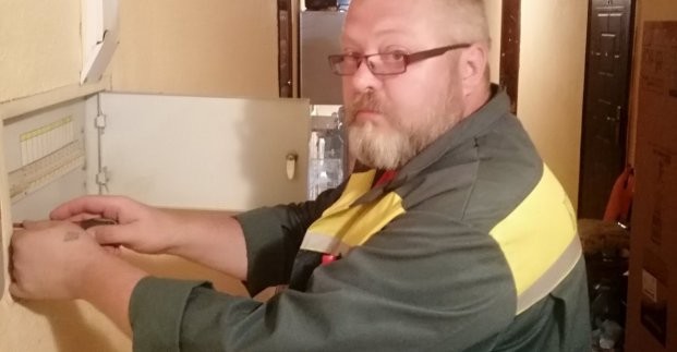 Электромонтер 5-го разряда КСП «Харьковгорлифт» по выполнению аварийных работ на внутридомовых электросетях Владимир Красильников работает в двух районах во время войны. Как сообщили на предприятии, Владимир Красильников родом из Изюма. На КСП «Харьковгорлифт» работает с 2010 года, где и получил специальность электромонтера. До этого был сварщиком.