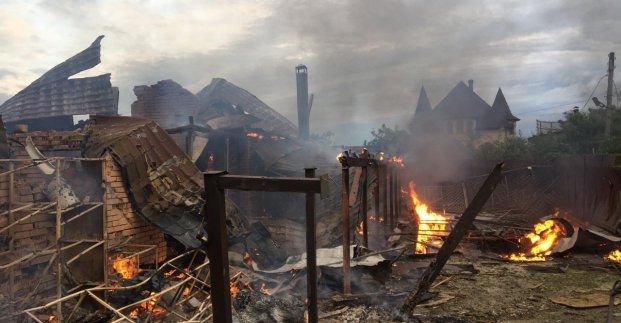 В 4:46 25 июня один из снарядов попал в частный двор в селе Клугино-Башкировка Чугуевского района. Площадь возгорания составила 250 кв. м. Пожар был потушен в 6:20.