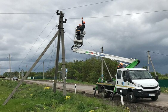 Как сообщили в АО "Харьковоблэнерго", воздушные линии электропередачи стояли с перебитыми проводами и разбитыми опорами.
