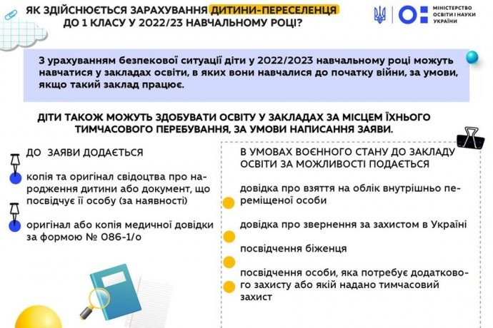 В Министерстве образования и науки сообщили, что с учетом ситуации безопасности дети в 2022/2023 учебном году могут учиться в учебных заведениях, в которых они учились до начала широкомасштабного вторжения российских войск в Украину, при условии, если такое заведение работает.