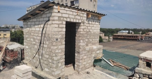 Рабочие КП «Харьковжилстрой» продолжают восстанавливать жилой фонд после обстрелов.