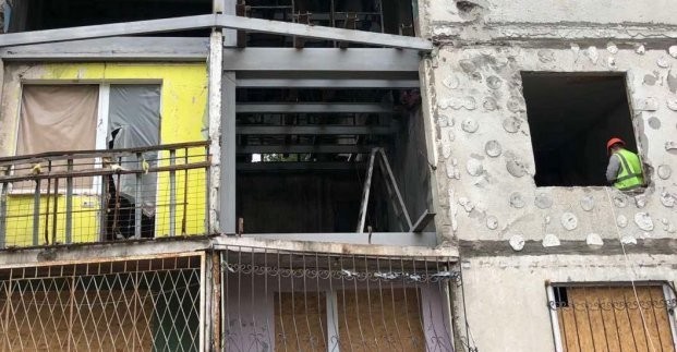 Отметим, в одном из подъездов уже завершают сварочные работы на 2-4 этажах и монтаж опалубки для заливки плит перекрытия. Ремонтно-восстановительные работы производятся подрядной организацией ООО «Балремстрой».