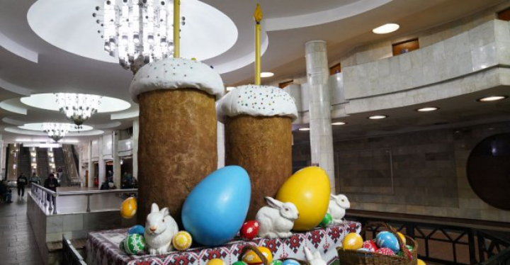 Рабочие КП «Харьковский метрополитен» завершили монтаж праздничных декораций к Пасхе на ст. м. «Университет».