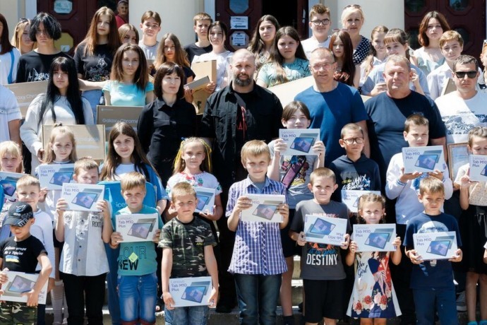 Начальник Харьковской областной военной администрации Олег Синегубов передал учащимся Изюма и Савинской поселковой общины более 600 хромбуков и планшетов.