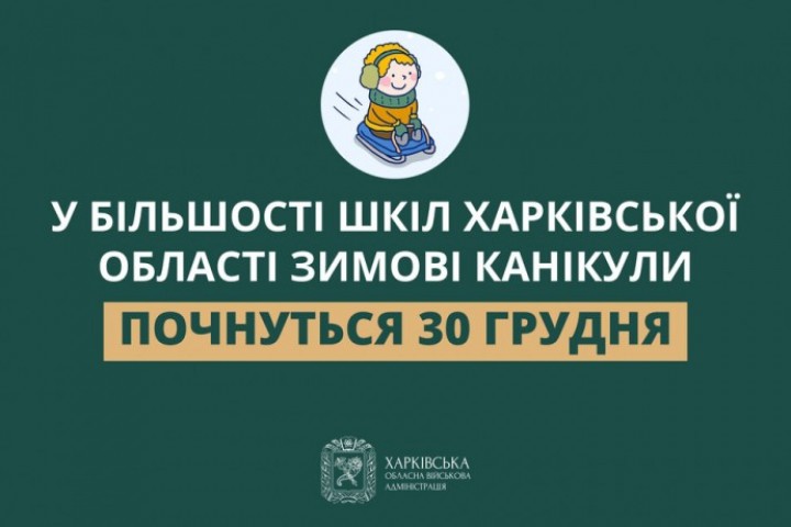 У 24 громадах Харківської області прийняли рішення розпочати зимові канікули 30 грудня, серед них: Харківська, Богодухівська, Балаклійська, Донецька, Куньєвська, Сахновщинська, Старовірівська, Дворічанська, Шевченківська, Кіндрашівська, Олексіївська, Безлюдівська, Солоницівська, Новопокровська, Чкаловська, Малинівська, Вовчанська, а також частина Малоданилівської, Липецької, Печенізької, Великобурлуцької, Зміївської, Вільхуватської та Дергачівської.