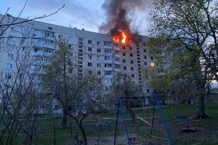 О 19:38 - внаслідок обстрілу Куп’янська горіла квартира на 9-му поверсі 9-ти поверхового житлового будинку на площі 70 м.кв.