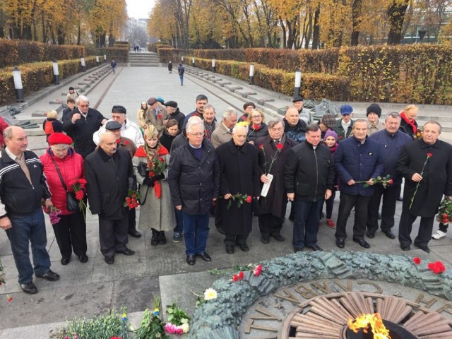 «То, что у нас сегодня происходит, – это знак беды, когда национал-олигархический режим, по сути, устанавливает фашистскую диктатуру. Когда те, кто воевал на стороне Гитлера, кто был пособником Гитлера, столько бед принесшие нашему народу, сегодня восхваляются и делаются героями. Пытаются из памяти советского народа вычеркнуть величие Победы и того, что было совершено советской системой для нашей родной Украины. Пытаются вычеркнуть для того, чтобы молодые люди были без памяти и родства, а беспамятство – это путь к безумию. Именно туда и ведет сегодня нынешний режим. Я, поздравляя сегодня с 75-летием освобождения Киева от фашистско-немецких захватчиков, еще раз хочу сказать: борьба с фашизмом продолжается, мы – нынешнее поколение – должны быть достойными того знамени Победы и все сделать, чтобы, объединив народ Украины, снова восстановить торжество принципов справедливости в нашем обществе», – заключил Петр Симоненко.