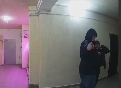 Позже высокий парень заметил дверной замок с камерой на двери напротив и попросил напарника надеть капюшон.
