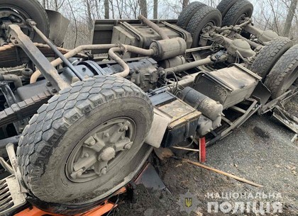 15 января около 19:00 в полицию поступило сообщение о том, что на трассе «Чугуев-Меловое» в районе села Коробочкино 56-летний водитель КамАЗа не справился с управлением и допустил опрокидывание транспортного средства.