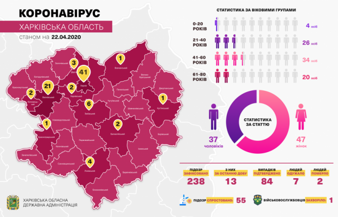 Также в области зарегистрировали 13 новых подозрений на коронавирус (также - у жителей Харькова и Змиевского района).