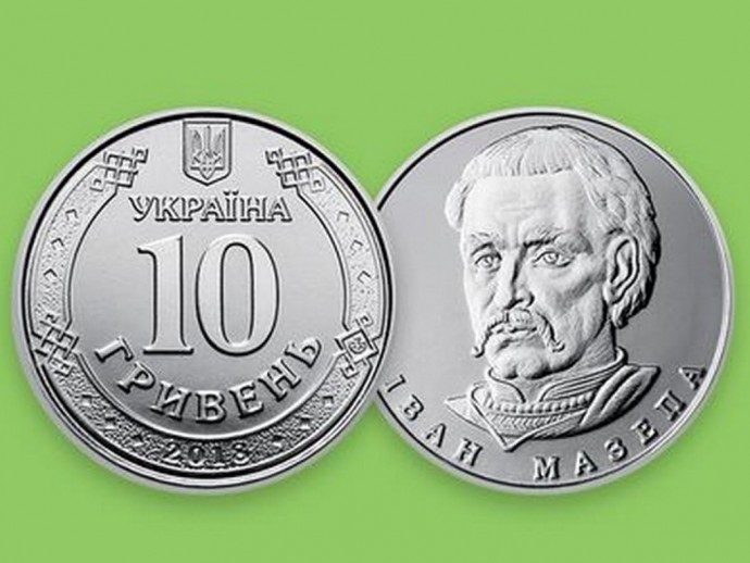 В Нацбанке также сообщают, что новая 10-гривневая монета отличается от других - она больше и значительно толще: диаметр составляет 23,5 мм, вес - 6,4 грамма. На реверсе изображен украинский гетман Иван Мазеп, а на аверсе - номинал монеты в обрамлении орнамента.
