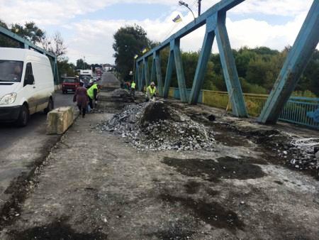 Сейчас на мосту проводят подготовительные работы: разбирают асфальтобетонное покрытие и демонтируют повышенное ограждение. После этого планируется отремонтировать деформационные швы, укрепить мост накладной бетонной плитой и положить новое асфальтобетонное покрытие. Завершить работу в Службе автомобильных дорог собираются до конца года.