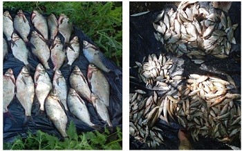 В сетях находилась такая рыба: 320 окуней, 169 шт. густеры, 123 шт. плотвы, 67 лещей и 7 судаков. Общий вес улова - 24,5 кг. Ущерб, нанесенный рыбным запасам Украины, составил 36 601 грн.