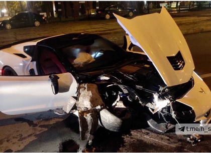 около 23:30 на проспекте Независимости, 5А врезался в столб Chevrolet Corvette C7.