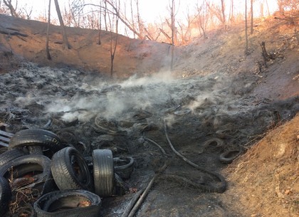 На момент прибытия спасателей горел мусор, ветки, деревья и автомобильные покрышки на площади около 200 кв.м.