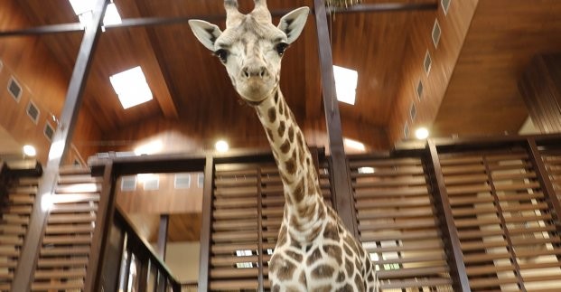 Напомним, жирафа Дёму в начале июня привезли в Харьковский зоопарк из Одесского биопарка.