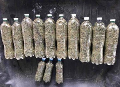 При дальнейшем осмотре автомобиля в баке для горючего были обнаружены пластиковые бутылки с веществом растительного происхождения серо-зеленого цвета с характерным запахом, которое имеет признаки наркотического вещества - каннабис.
