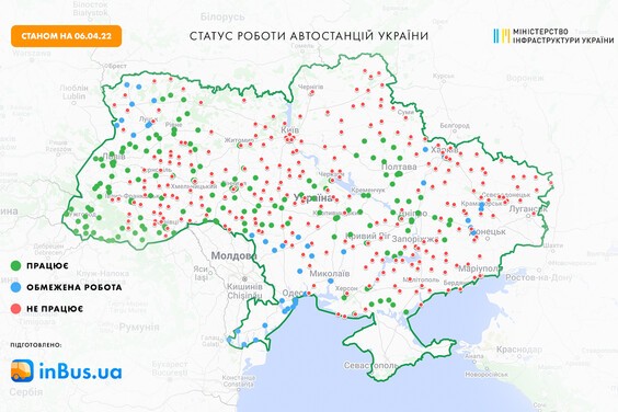 Министерство инфраструктуры опубликовало онлайн-карту всех автостанций, работающих на территории Украины.