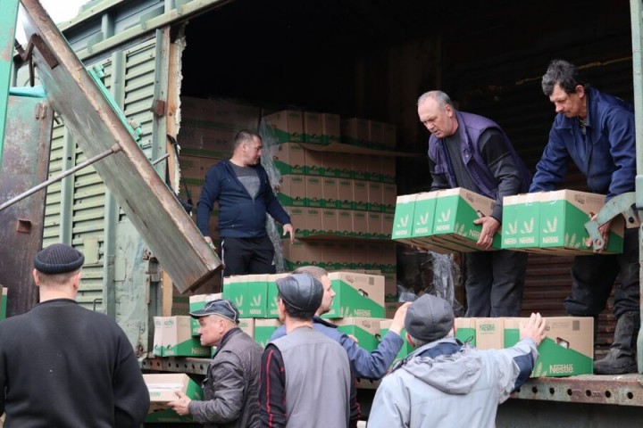 Жители Лозовской громады и временно перемещенные люди получат сухие завтраки, крупы, макароны, растительное масло, печенье, сахар, консервы и куриное мясо.