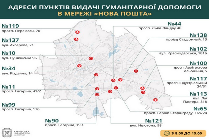 Напоминаем, что гуманитарная помощь в указанных на карте отделениях предоставляется бесплатно.