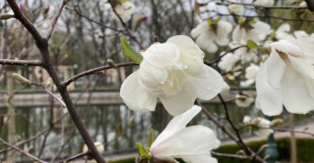Как сообщили в парке, а вокруг озера цветут белые магнолии и раскрываются розовые бутоны миндаля.